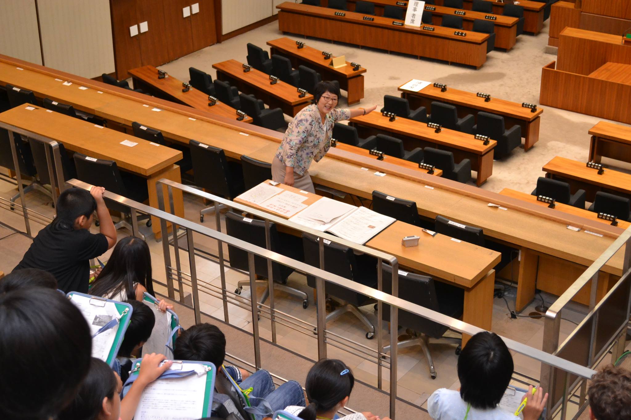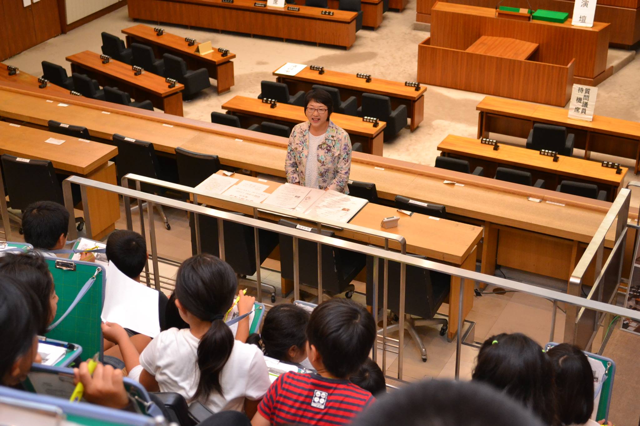 県議会広報委員会の委員が広報活動の一環で、小学生の県庁見学のお手伝い、議場で議会の説明をしています。私は13日に、4回目の説明をしました。一通りの説明の後、子どもたちから次々に質問。「知事と議長はどっちが偉いの?」とか「けんかはしますか」とか・・・楽しくもあり、緊張もします。最後の子どもたちは、私に「おばちゃん、ありがと」と笑顔で手を振って帰っていきました。