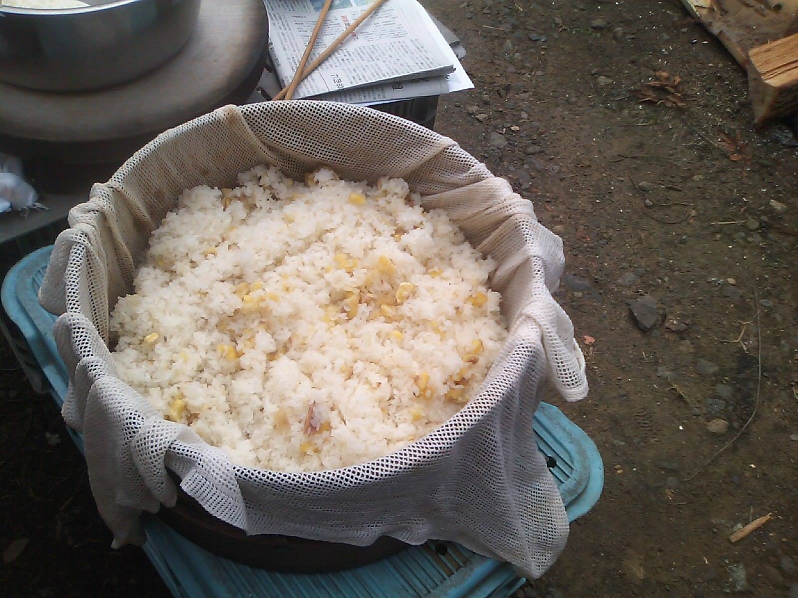 できたての栗おこわをタッパーに詰めていただき、家で美味しくいただきました。