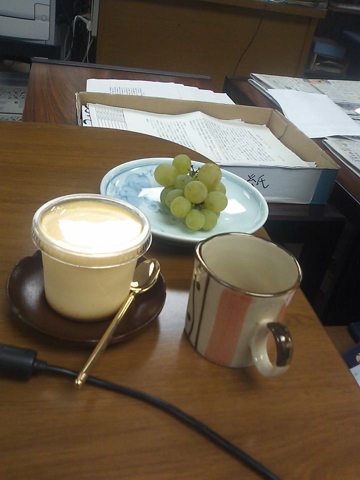 写真のプリンは「おいしい信州ふーど佐久地域セレクション」と銘打って、佐久地方の美味しいものを昼休みに県庁10階食堂で販売。藤岡県議が「ちゃたまや」のプリンを買ってきてくれました。